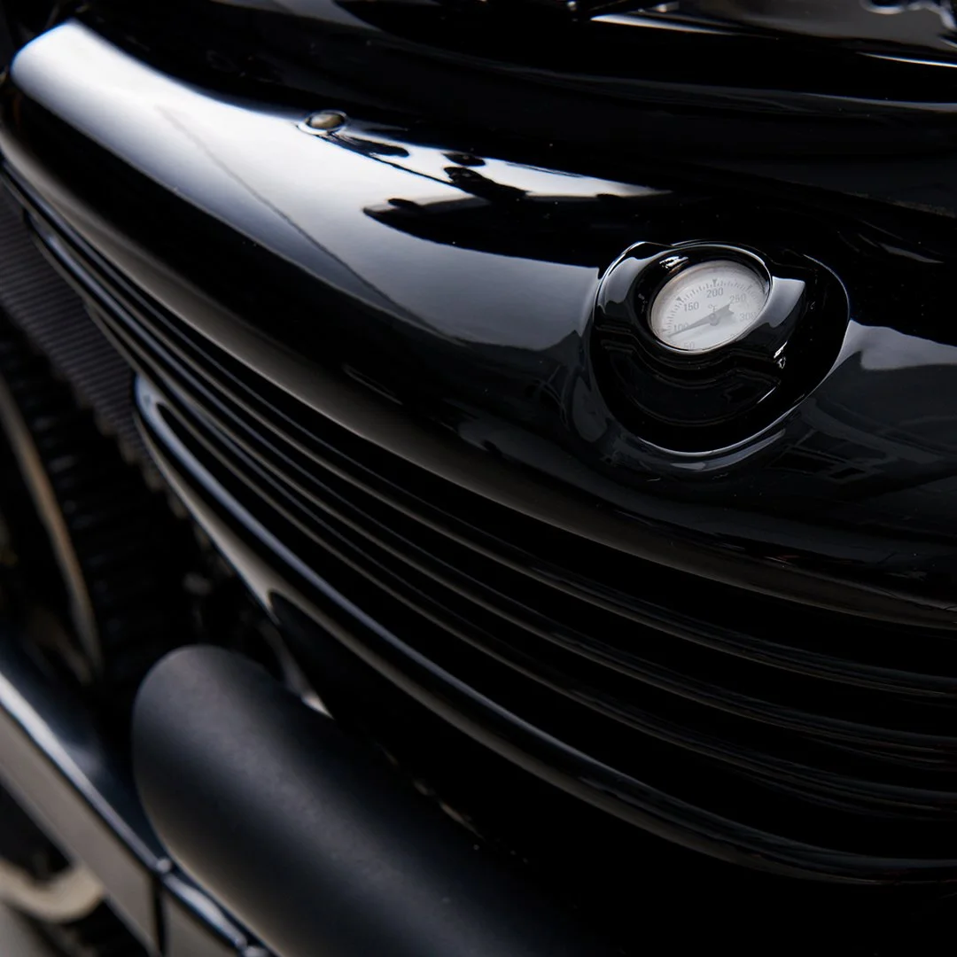 First, we performed a blackening of the motorcycle by applying powder coating to various chrome components. We will replace the headlight with a 5.5-inch slim unit, install a low-drag bar, and fit Messner mirrors, giving the overall design a cleaner and sharper appearance. The rear body structure will be modified, and a bobber solo seat will be added, creating a highly aggressive and bold look.